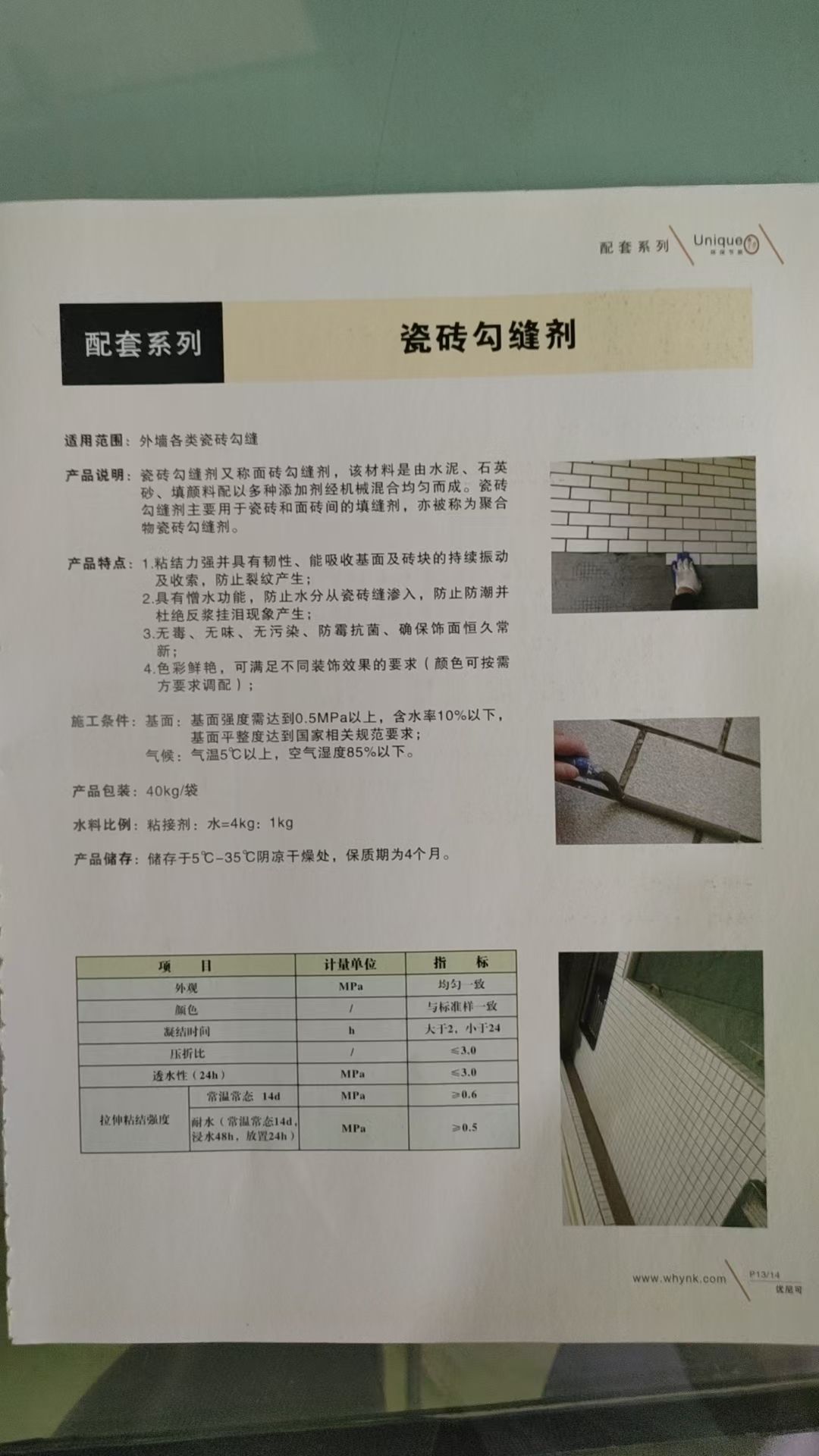 2.具有憎水功能,防止水分从瓷砖缝渗入,防止防潮并杜绝反浆挂泪现象产生;
